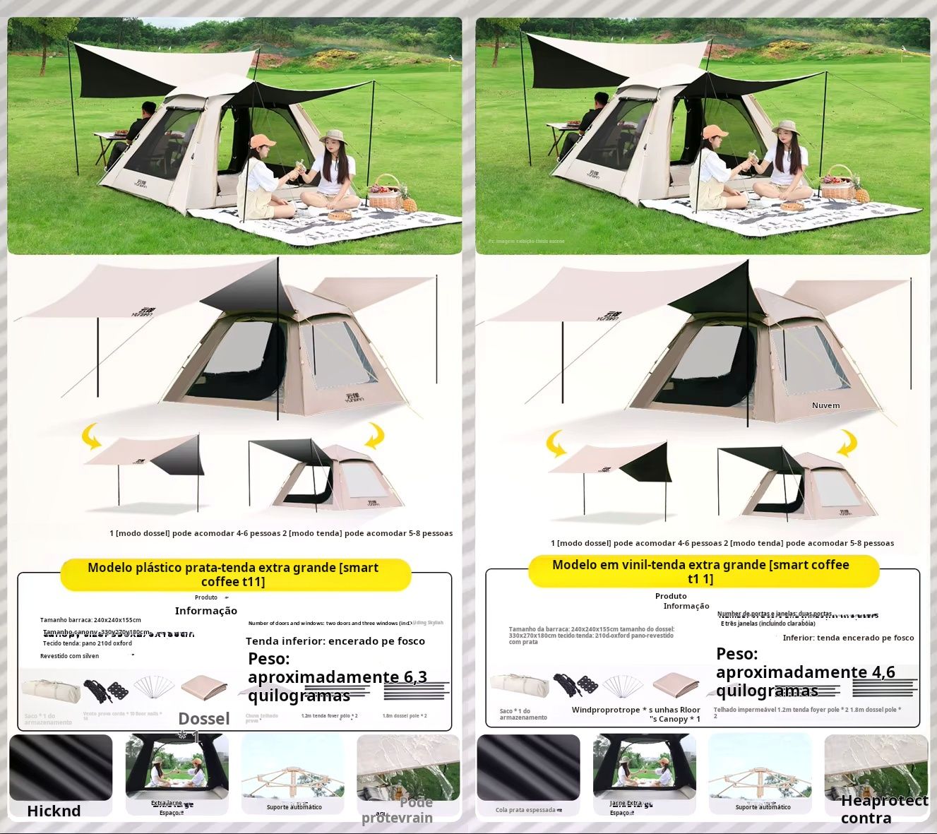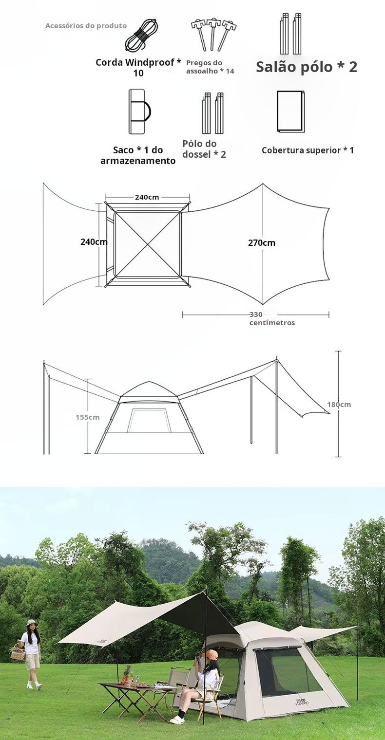 户外帐篷 户外营地帐篷 便携式可折叠野营帐篷 防雨 防晒 遮光涂层 户外过夜折叠铝合金骨架野营帐篷 雨篷 送货到家 货到付款